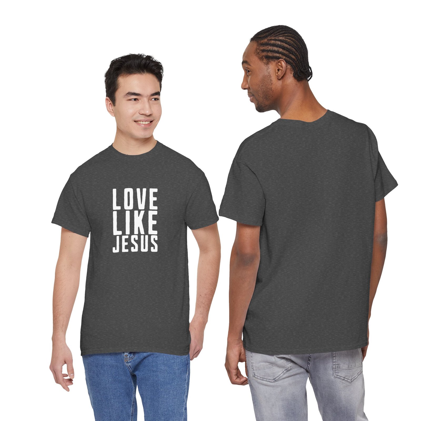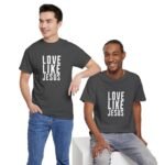 Wear this tee like a quiet declaration. The soft, sturdy cotton sits close without clinging, letting the simple message — Love Like Jesus — do the talking. It settles into your day whether you’re loading the car for a community meal, folding laundry between prayers, or sitting on a park bench with a friend who needs to be seen. The design reads as both gentle reminder and invitation: live kindly, love boldly. The crew neckline and classic fit keep the look grounded and approachable. It’s breathable enough for warm-weather volunteer days and substantial enough to layer under a jacket for cooler evenings. Every time you pull it on, it’s a choice to show up with patience and compassion.